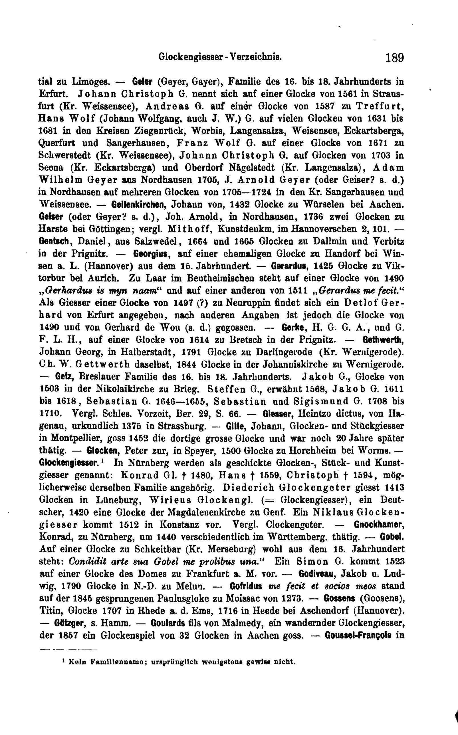 "Neuere Giesser sind: [...] J. Arnold Geyer aus Nordhausen, 1705 - 20".